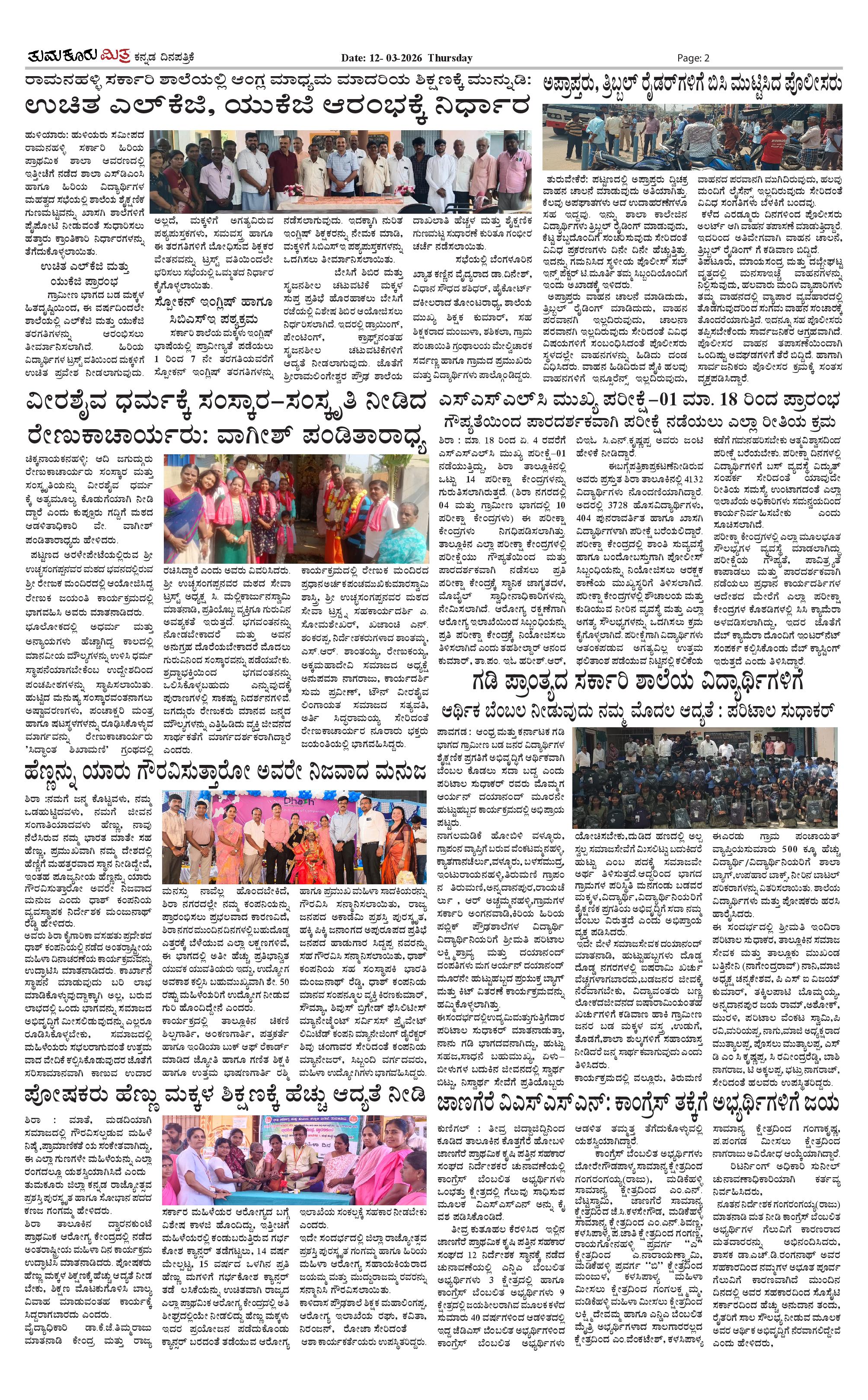 ತುಮಕೂರು ಮಿತ್ರ ಕನ್ನಡ ದಿನಪತ್ರಿಕೆ Page: 2 March 12, 2026 << First << 2 >> Last >> Page 1Page 2Page 3Page 4 × ತುಮಕೂರು ಮಿತ್ರ ಕನ್ನಡ ದಿನಪತ್ರಿಕೆ TUMKUR MITRA-page-001TUMKUR MITRA-page-002TUMKUR MITRA-page-003TUMKUR MITRA-page-004 << First << 2 >> Last >> TUMKUR MITRA-page-001TUMKUR MITRA-page-002TUMKUR MITRA-page-003TUMKUR MITRA-page-004 TUMKUR MITRA-page-002