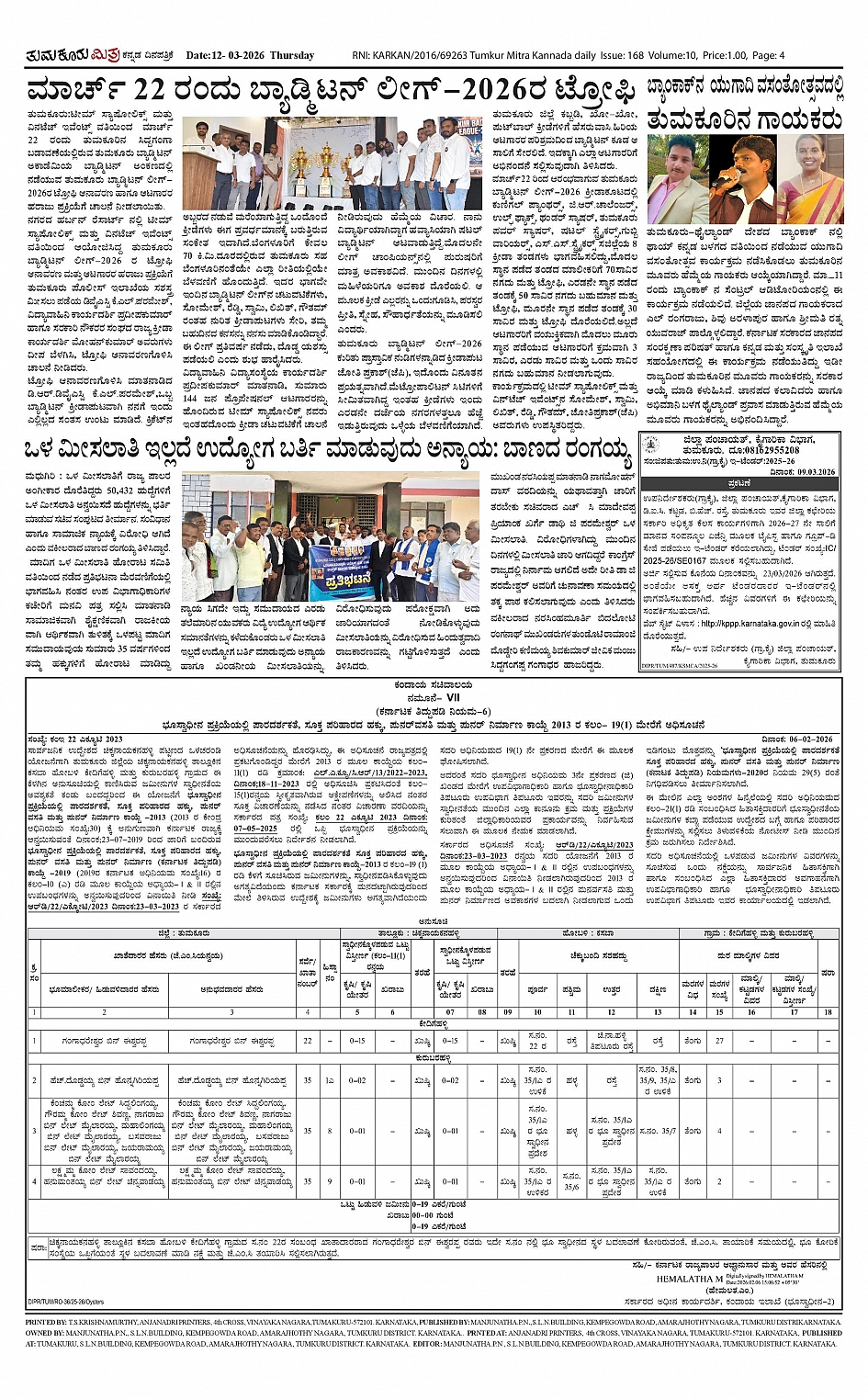 ತುಮಕೂರು ಮಿತ್ರ ಕನ್ನಡ ದಿನಪತ್ರಿಕೆ Page: 4 March 12, 2026 << First << 4 >> Last >> Page 1Page 2Page 3Page 4 × ತುಮಕೂರು ಮಿತ್ರ ಕನ್ನಡ ದಿನಪತ್ರಿಕೆ TUMKUR MITRA-page-001TUMKUR MITRA-page-002TUMKUR MITRA-page-003TUMKUR MITRA-page-004 << First << 4 >> Last >> TUMKUR MITRA-page-001TUMKUR MITRA-page-002TUMKUR MITRA-page-003TUMKUR MITRA-page-004 TUMKUR MITRA-page-004