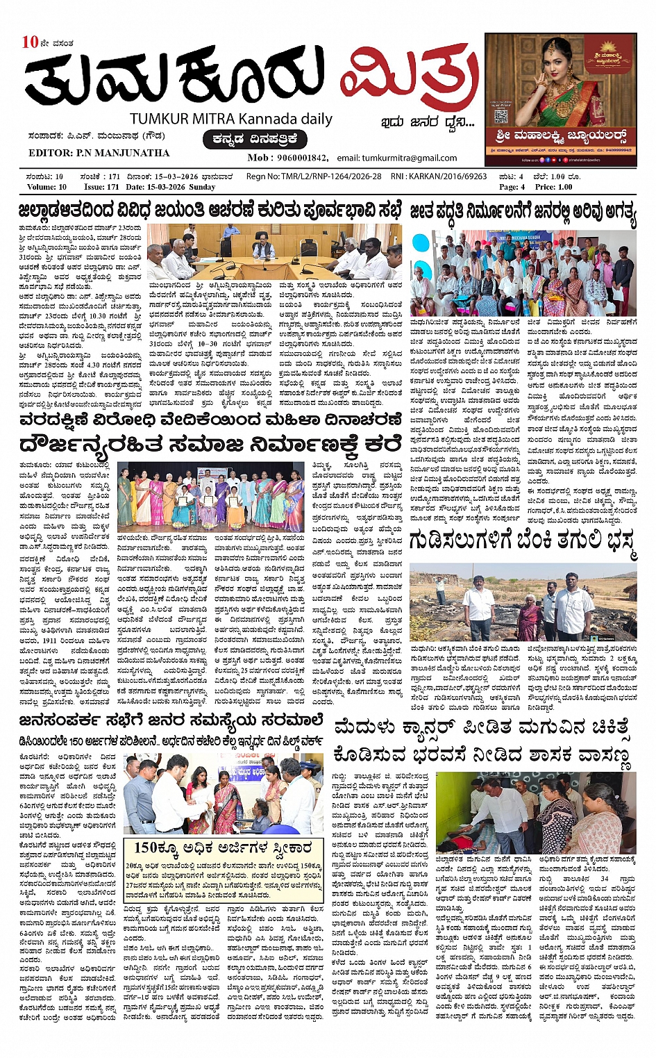 ತುಮಕೂರು ಮಿತ್ರ ಕನ್ನಡ ದಿನಪತ್ರಿಕೆ March 15, 2026 << First << 1 >> Last >> Page 1Page 2Page 3Page 4 × ತುಮಕೂರು ಮಿತ್ರ ಕನ್ನಡ ದಿನಪತ್ರಿಕೆ TUMKUR MITRA (1)-page-001TUMKUR MITRA (1)-page-002TUMKUR MITRA (1)-page-003TUMKUR MITRA (1)-page-004 << First << 1 >> Last >> TUMKUR MITRA (1)-page-001TUMKUR MITRA (1)-page-002TUMKUR MITRA (1)-page-003TUMKUR MITRA (1)-page-004 TUMKUR MITRA (1)-page-001