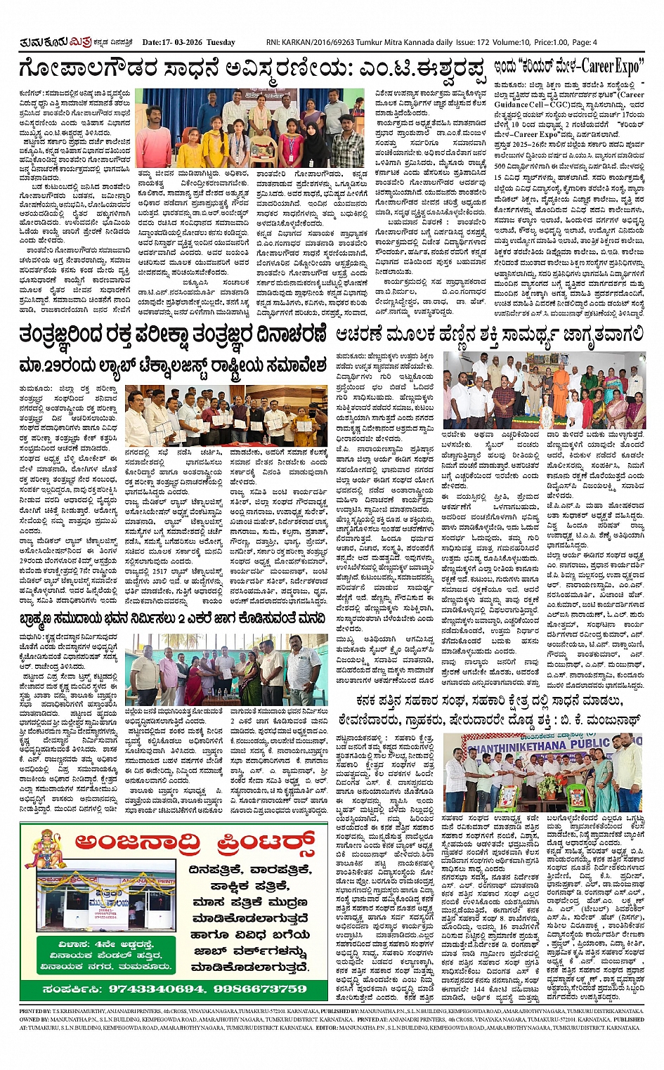 ತುಮಕೂರು ಮಿತ್ರ ಕನ್ನಡ ದಿನಪತ್ರಿಕೆ Page: 4 March 17, 2026 << First << 4 >> Last >> Page 1Page 2Page 3Page 4 × ತುಮಕೂರು ಮಿತ್ರ ಕನ್ನಡ ದಿನಪತ್ರಿಕೆ TUMKUR MITRA (2)-page-001TUMKUR MITRA (2)-page-002TUMKUR MITRA (2)-page-003TUMKUR MITRA (2)-page-004 << First << 4 >> Last >> TUMKUR MITRA (2)-page-001TUMKUR MITRA (2)-page-002TUMKUR MITRA (2)-page-003TUMKUR MITRA (2)-page-004 TUMKUR MITRA (2)-page-004