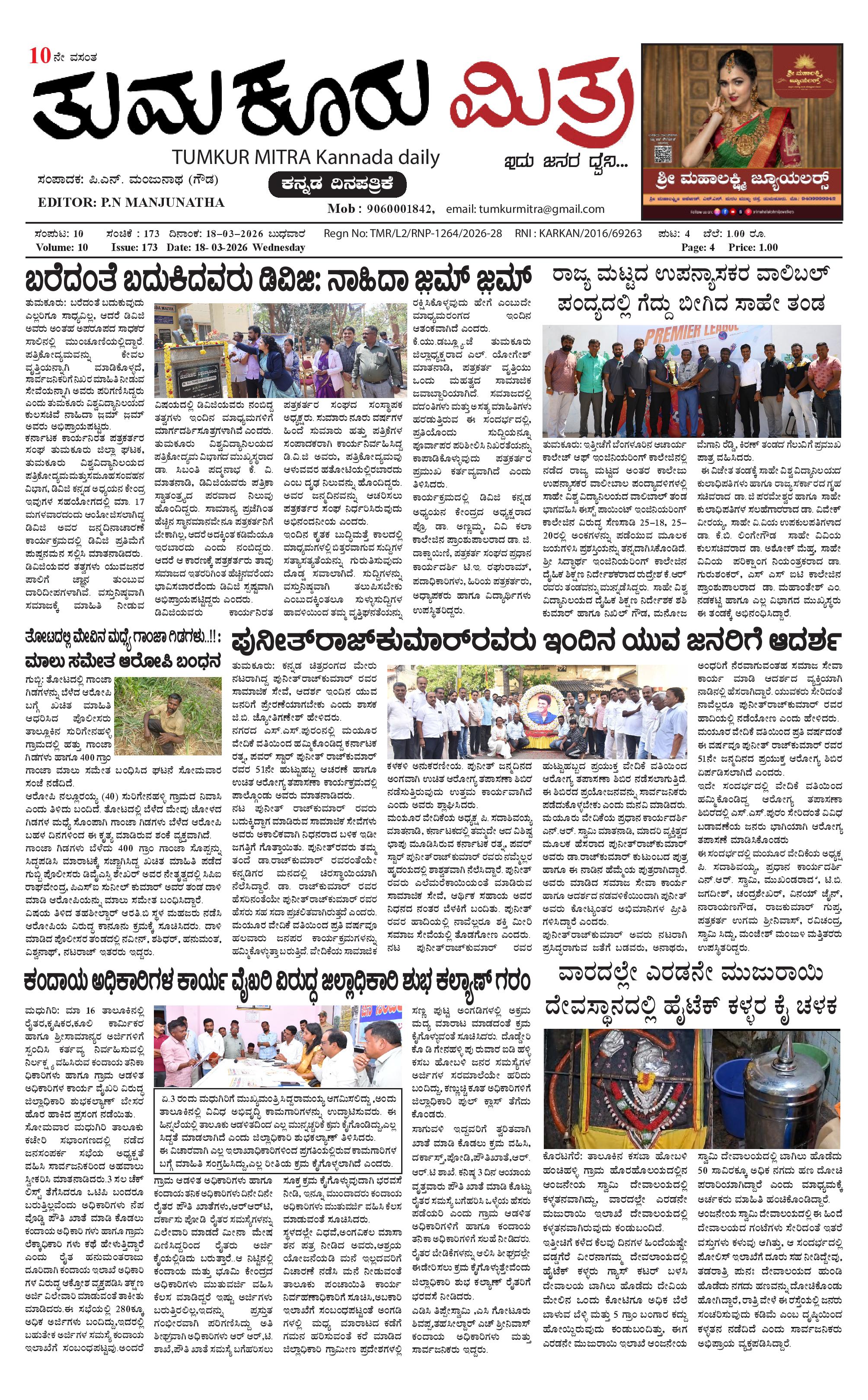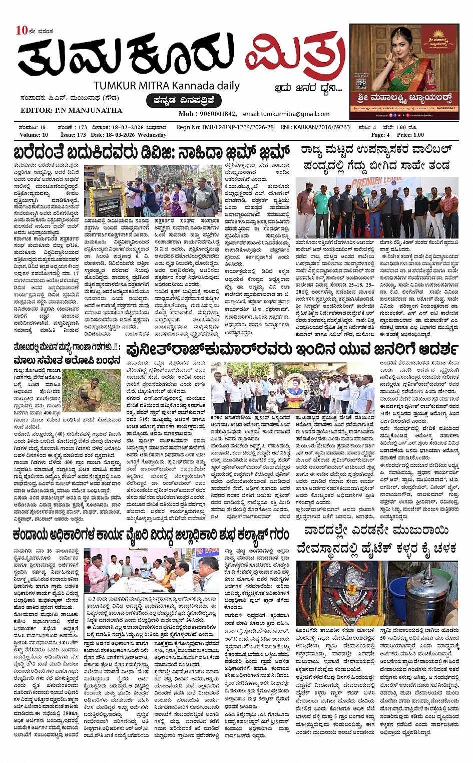 ತುಮಕೂರು ಮಿತ್ರ ಕನ್ನಡ ದಿನಪತ್ರಿಕೆ March 18, 2026 << First << 1 >> Last >> Page 1Page 2Page 3Page 4 × ತುಮಕೂರು ಮಿತ್ರ ಕನ್ನಡ ದಿನಪತ್ರಿಕೆ TUMKUR MITRA (2)-page-001TUMKUR MITRA (2)-page-002TUMKUR MITRA (2)-page-003TUMKUR MITRA (2)-page-004 << First << 1 >> Last >> TUMKUR MITRA (2)-page-001TUMKUR MITRA (2)-page-002TUMKUR MITRA (2)-page-003TUMKUR MITRA (2)-page-004 TUMKUR MITRA (2)-page-001