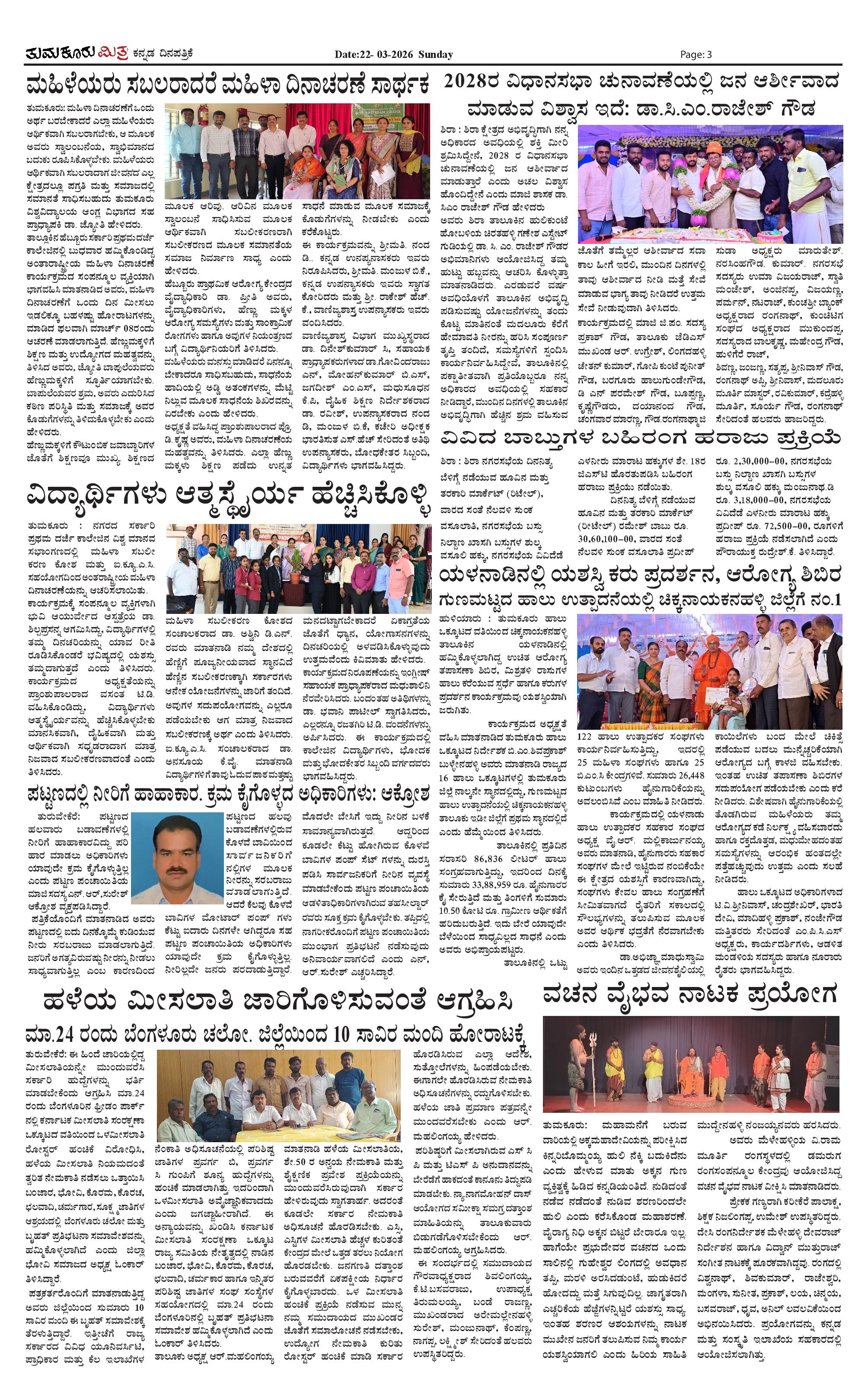ತುಮಕೂರು ಮಿತ್ರ ಕನ್ನಡ ದಿನಪತ್ರಿಕೆ Page: 3 March 22, 2026 << First << 3 >> Last >> Page 1Page 2Page 3Page 4 × ತುಮಕೂರು ಮಿತ್ರ ಕನ್ನಡ ದಿನಪತ್ರಿಕೆ TUMKUR MITRA (1)-page-001TUMKUR MITRA (1)-page-002TUMKUR MITRA (1)-page-003TUMKUR MITRA (1)-page-004 << First << 3 >> Last >> TUMKUR MITRA (1)-page-001TUMKUR MITRA (1)-page-002TUMKUR MITRA (1)-page-003TUMKUR MITRA (1)-page-004 TUMKUR MITRA (1)-page-003
