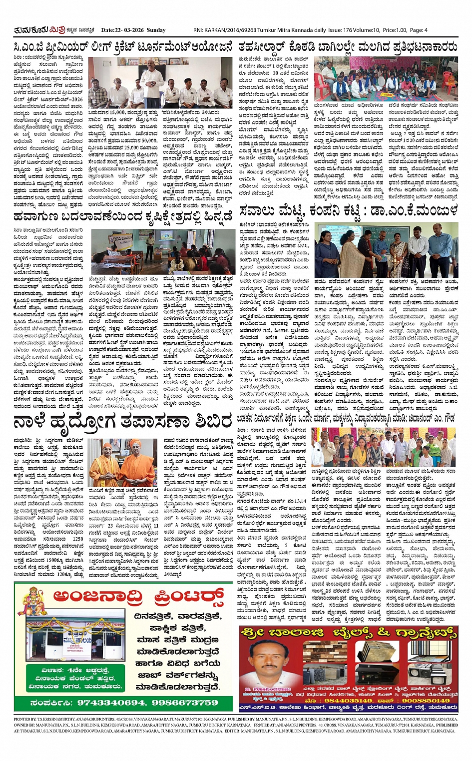 ತುಮಕೂರು ಮಿತ್ರ ಕನ್ನಡ ದಿನಪತ್ರಿಕೆ Page: 4 March 22, 2026 << First << 4 >> Last >> Page 1Page 2Page 3Page 4 × ತುಮಕೂರು ಮಿತ್ರ ಕನ್ನಡ ದಿನಪತ್ರಿಕೆ TUMKUR MITRA (1)-page-001TUMKUR MITRA (1)-page-002TUMKUR MITRA (1)-page-003TUMKUR MITRA (1)-page-004 << First << 4 >> Last >> TUMKUR MITRA (1)-page-001TUMKUR MITRA (1)-page-002TUMKUR MITRA (1)-page-003TUMKUR MITRA (1)-page-004 TUMKUR MITRA (1)-page-004