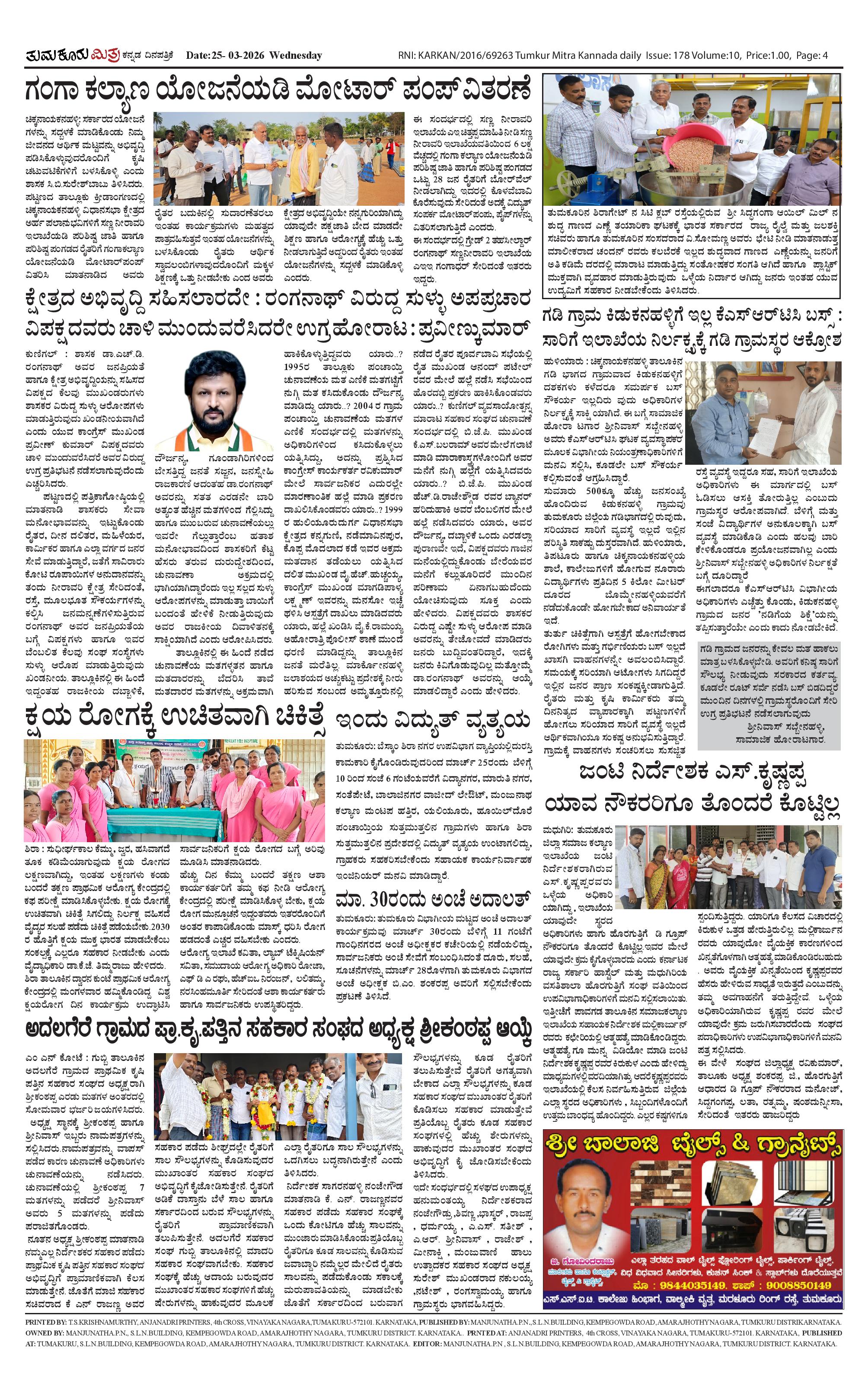 ತುಮಕೂರು ಮಿತ್ರ ಕನ್ನಡ ದಿನಪತ್ರಿಕೆ Page: 4 March 25, 2026 << First << 4 >> Last >> Page 1Page 2Page 3Page 4 × ತುಮಕೂರು ಮಿತ್ರ ಕನ್ನಡ ದಿನಪತ್ರಿಕೆ TUMKUR MITRA-page-001TUMKUR MITRA-page-002TUMKUR MITRA-page-003TUMKUR MITRA-page-004 << First << 4 >> Last >> TUMKUR MITRA-page-001TUMKUR MITRA-page-002TUMKUR MITRA-page-003TUMKUR MITRA-page-004 TUMKUR MITRA-page-004