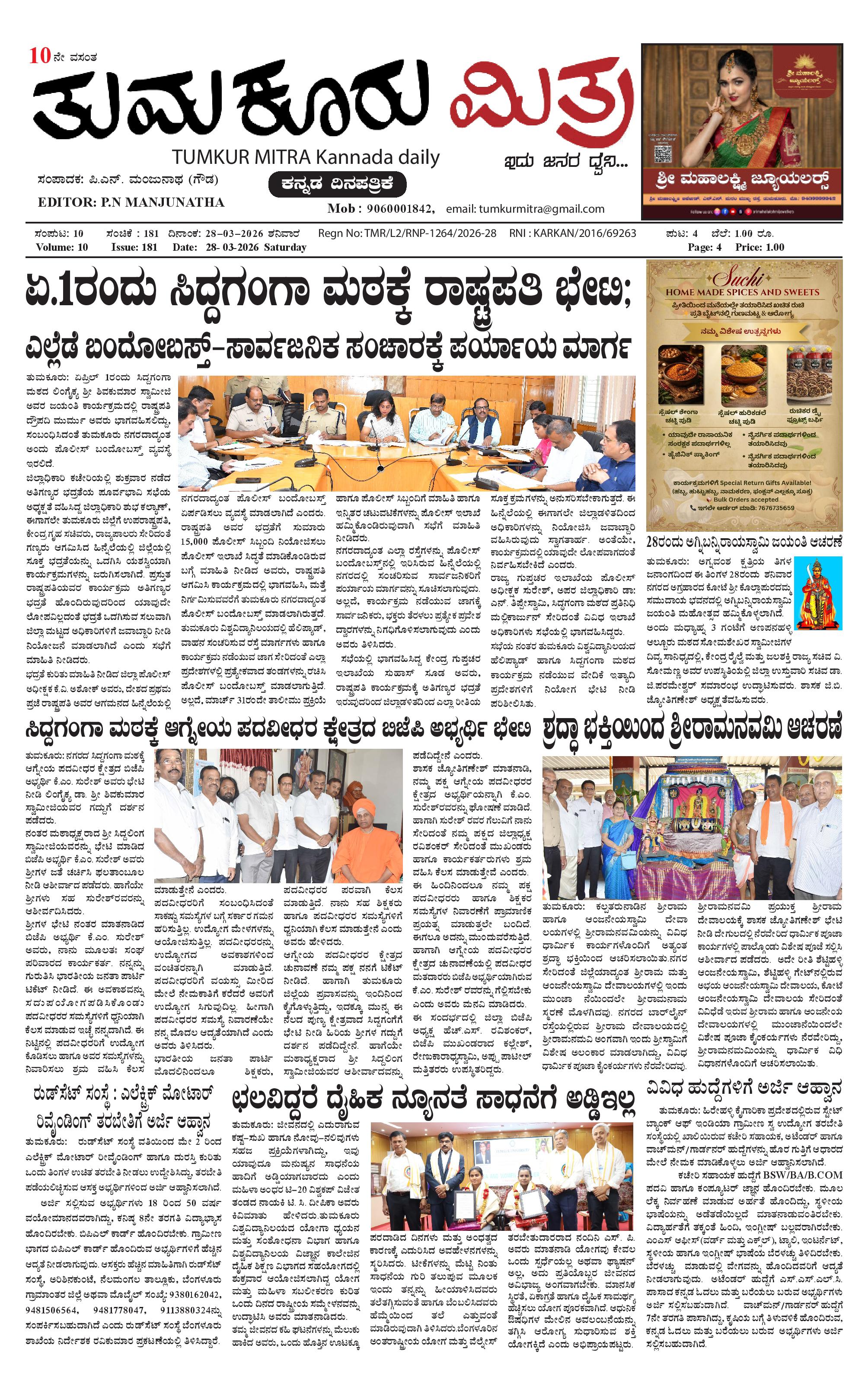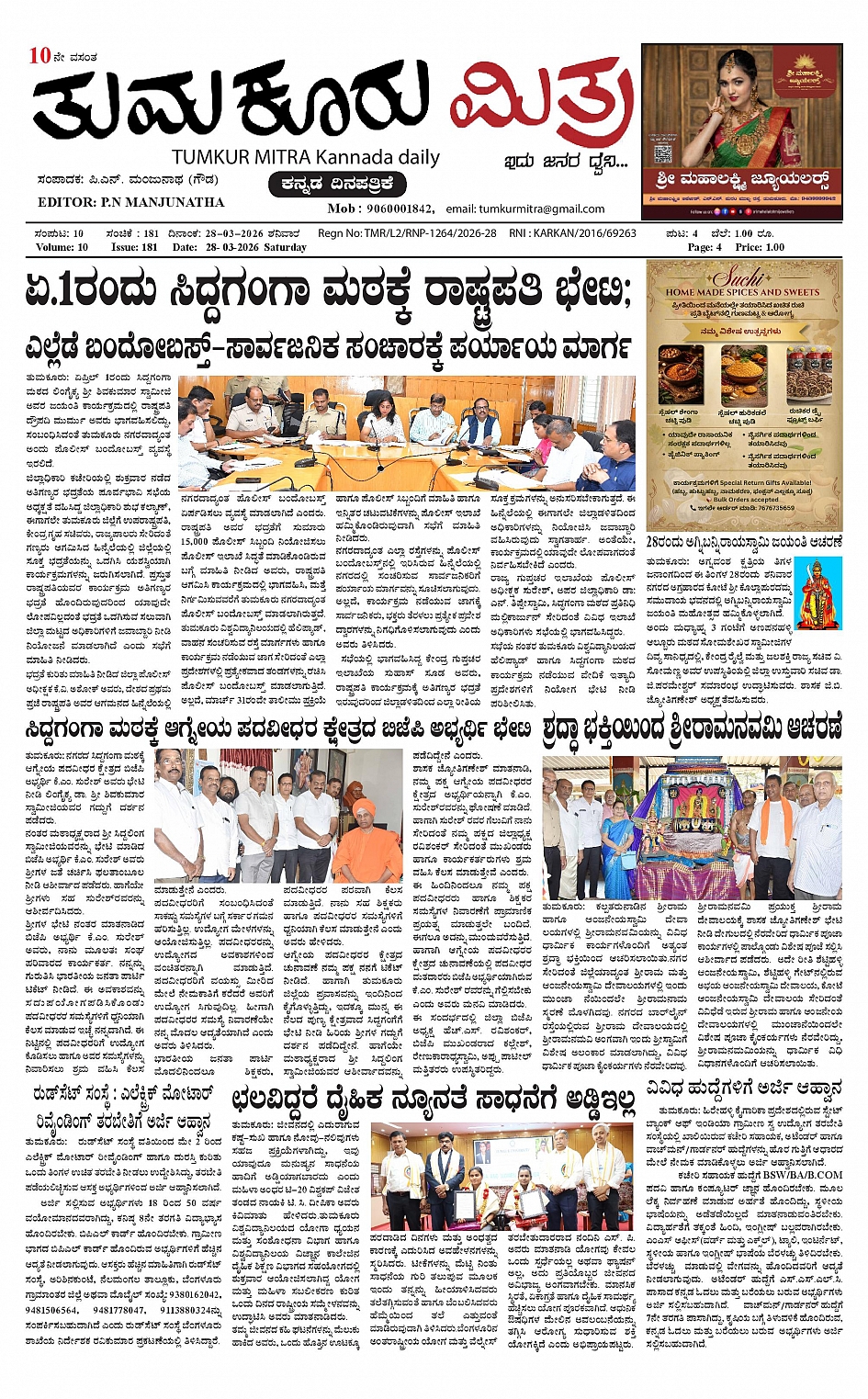 ತುಮಕೂರು ಮಿತ್ರ ಕನ್ನಡ ದಿನಪತ್ರಿಕೆ March 28, 2026 << First << 1 >> Last >> Page 1Page 2Page 3Page 4 × ತುಮಕೂರು ಮಿತ್ರ ಕನ್ನಡ ದಿನಪತ್ರಿಕೆ TUMKUR MITRA-page-001TUMKUR MITRA-page-002TUMKUR MITRA-page-003TUMKUR MITRA-page-004 << First << 1 >> Last >> TUMKUR MITRA-page-001TUMKUR MITRA-page-002TUMKUR MITRA-page-003TUMKUR MITRA-page-004 TUMKUR MITRA-page-001