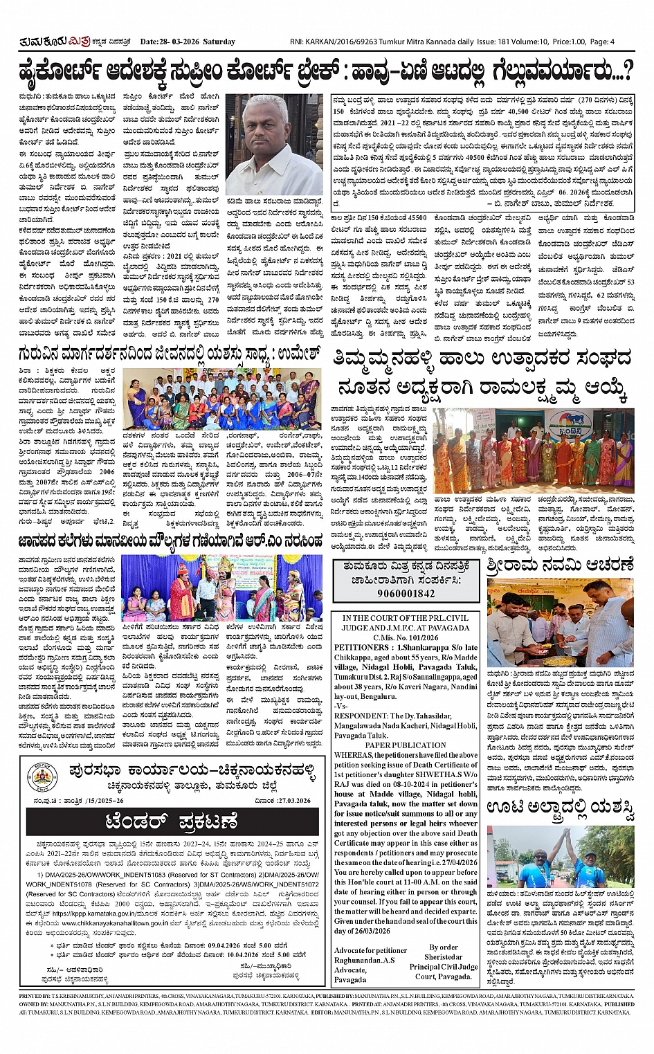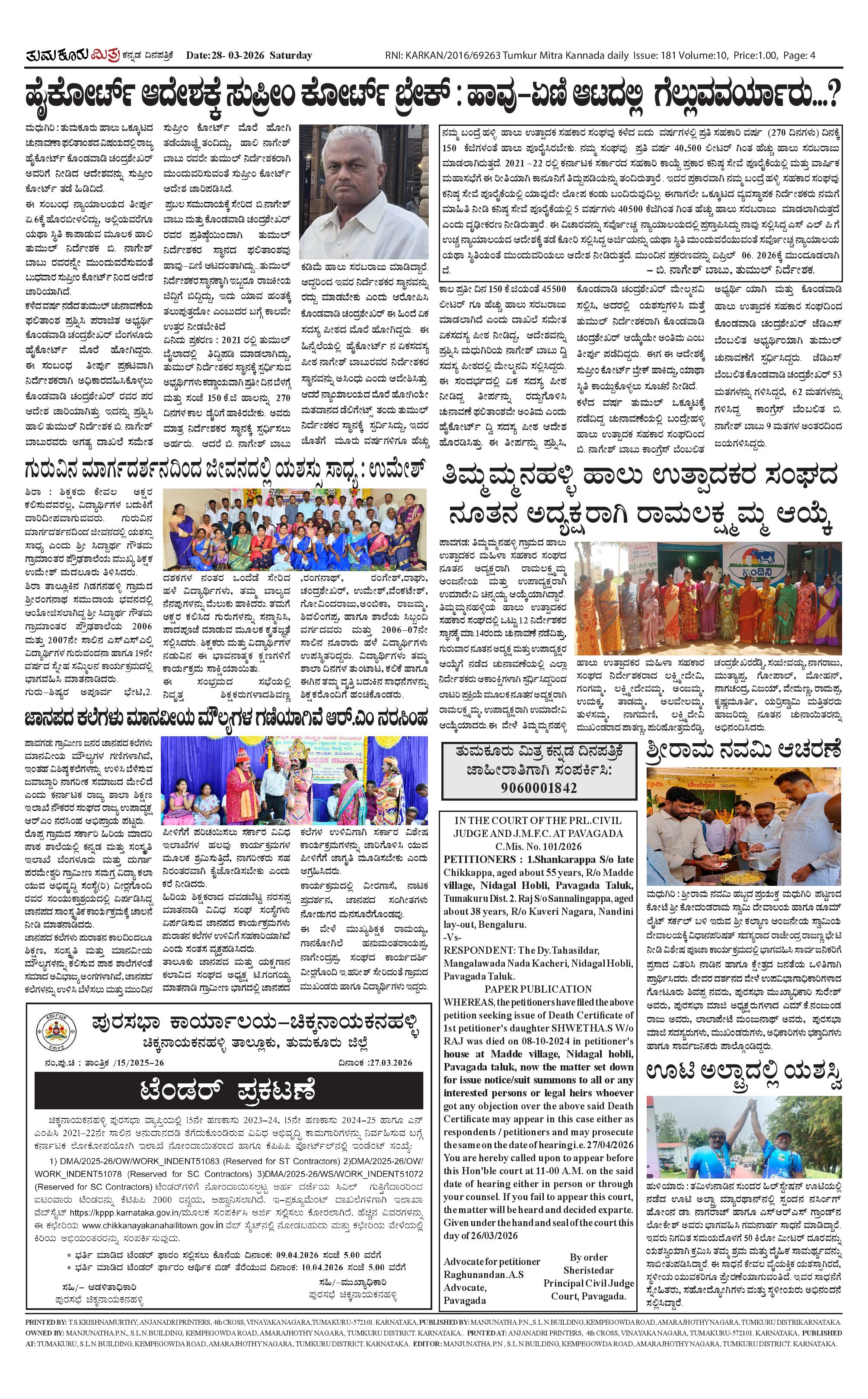 ತುಮಕೂರು ಮಿತ್ರ ಕನ್ನಡ ದಿನಪತ್ರಿಕೆ Page: 4 March 28, 2026 << First << 4 >> Last >> Page 1Page 2Page 3Page 4 × ತುಮಕೂರು ಮಿತ್ರ ಕನ್ನಡ ದಿನಪತ್ರಿಕೆ TUMKUR MITRA-page-001TUMKUR MITRA-page-002TUMKUR MITRA-page-003TUMKUR MITRA-page-004 << First << 4 >> Last >> TUMKUR MITRA-page-001TUMKUR MITRA-page-002TUMKUR MITRA-page-003TUMKUR MITRA-page-004 TUMKUR MITRA-page-004