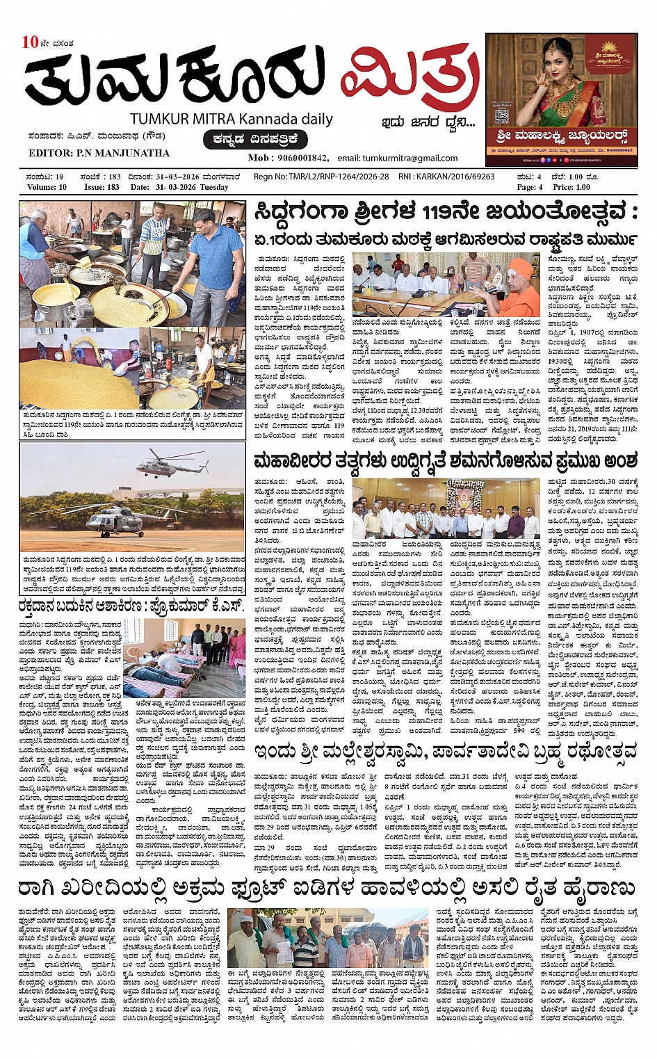 ತುಮಕೂರು ಮಿತ್ರ ಕನ್ನಡ ದಿನಪತ್ರಿಕೆ March 31, 2026 << First << 1 >> Last >> Page 1Page 2Page 3Page 4 × ತುಮಕೂರು ಮಿತ್ರ ಕನ್ನಡ ದಿನಪತ್ರಿಕೆ TUMKUR MITRA (2)-page-001TUMKUR MITRA (2)-page-002TUMKUR MITRA (2)-page-003TUMKUR MITRA (2)-page-004 << First << 1 >> Last >> TUMKUR MITRA (2)-page-001TUMKUR MITRA (2)-page-002TUMKUR MITRA (2)-page-003TUMKUR MITRA (2)-page-004 TUMKUR MITRA (2)-page-001