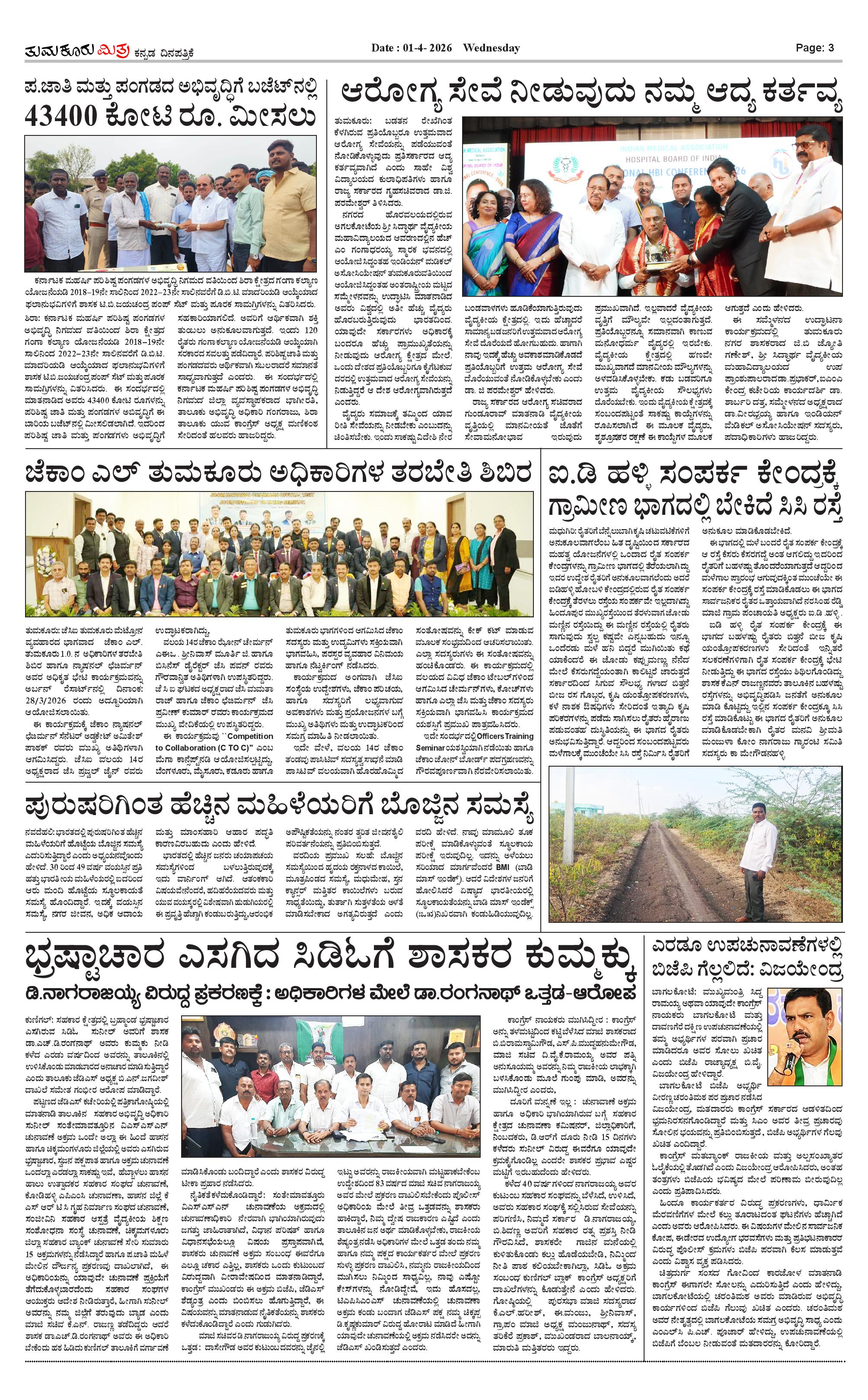 ತುಮಕೂರು ಮಿತ್ರ ಕನ್ನಡ ದಿನಪತ್ರಿಕೆ Page: 3 April 01, 2026 << First << 3 >> Last >> Page 1Page 2Page 3Page 4 × ತುಮಕೂರು ಮಿತ್ರ ಕನ್ನಡ ದಿನಪತ್ರಿಕೆ 1-page-0012-page-0013-page-0014-page-001 << First << 3 >> Last >> 1-page-0012-page-0013-page-0014-page-001 3-page-001