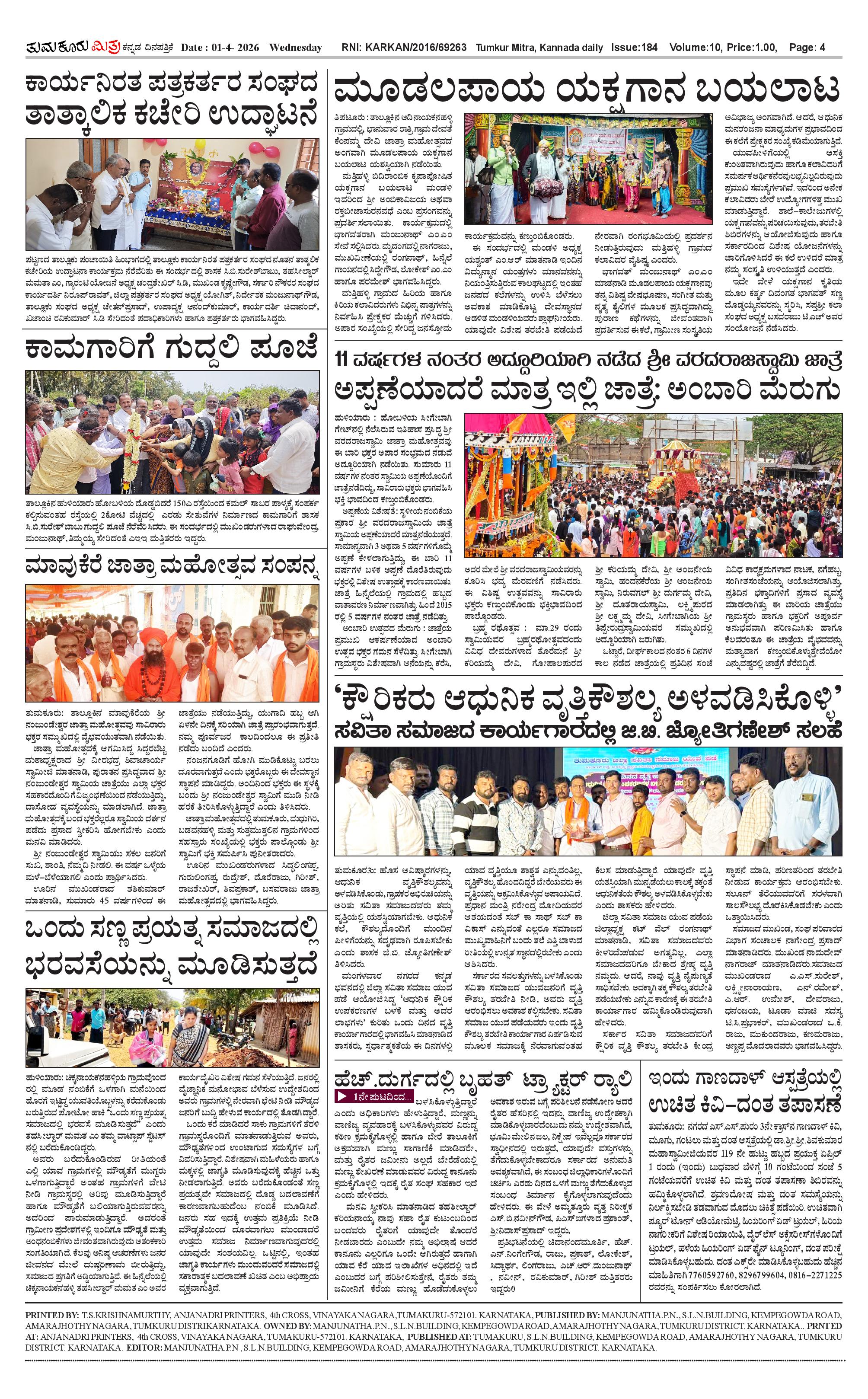ತುಮಕೂರು ಮಿತ್ರ ಕನ್ನಡ ದಿನಪತ್ರಿಕೆ Page: 4 April 01, 2026 << First << 4 >> Last >> Page 1Page 2Page 3Page 4 × ತುಮಕೂರು ಮಿತ್ರ ಕನ್ನಡ ದಿನಪತ್ರಿಕೆ 1-page-0012-page-0013-page-0014-page-001 << First << 4 >> Last >> 1-page-0012-page-0013-page-0014-page-001 4-page-001
