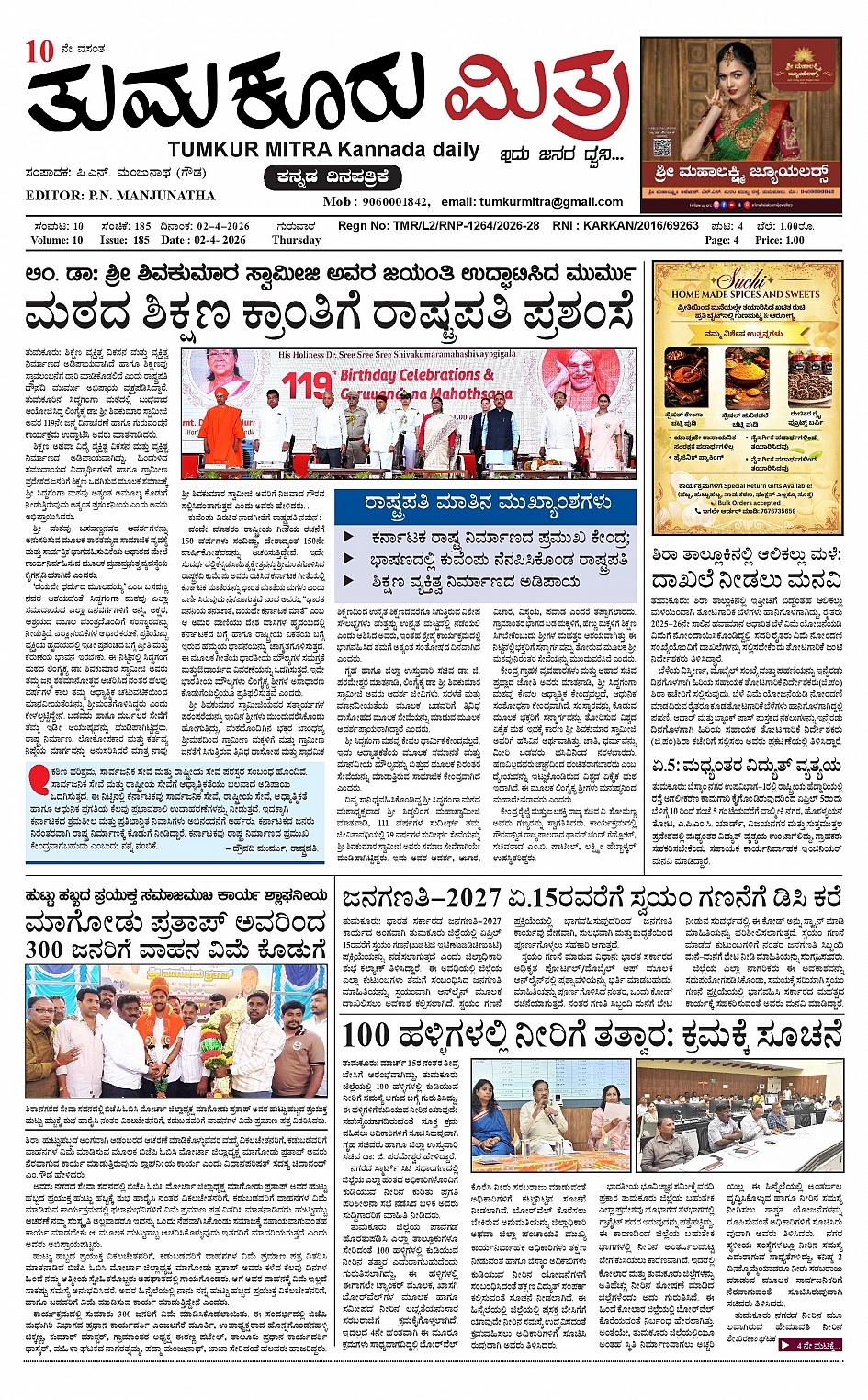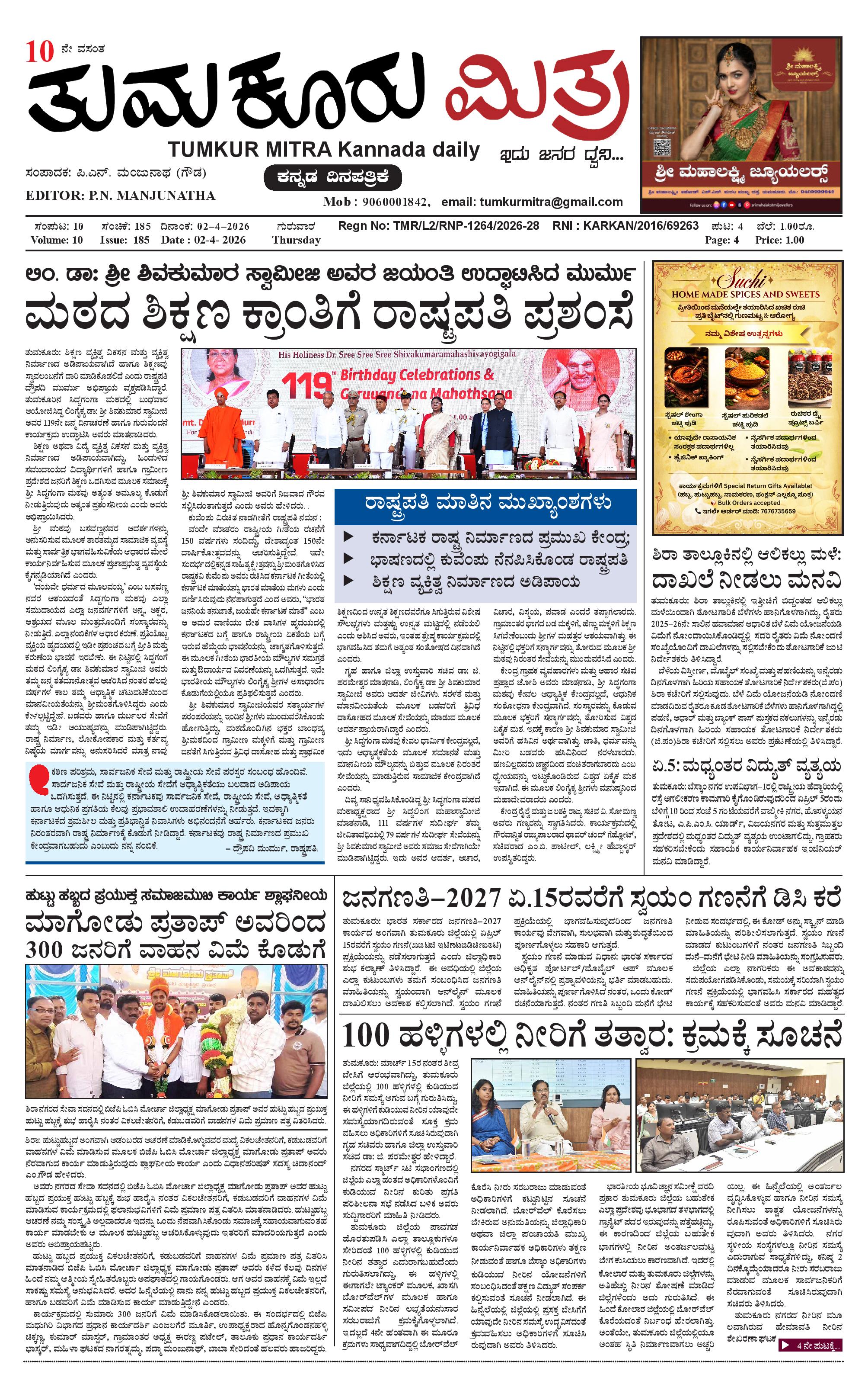 ತುಮಕೂರು ಮಿತ್ರ ಕನ್ನಡ ದಿನಪತ್ರಿಕೆ April 02, 2026 << First << 1 >> Last >> Page 1Page 2Page 3Page 4 × ತುಮಕೂರು ಮಿತ್ರ ಕನ್ನಡ ದಿನಪತ್ರಿಕೆ 1-page-0012-page-0013-page-0014-page-001 << First << 1 >> Last >> 1-page-0012-page-0013-page-0014-page-001 1-page-001