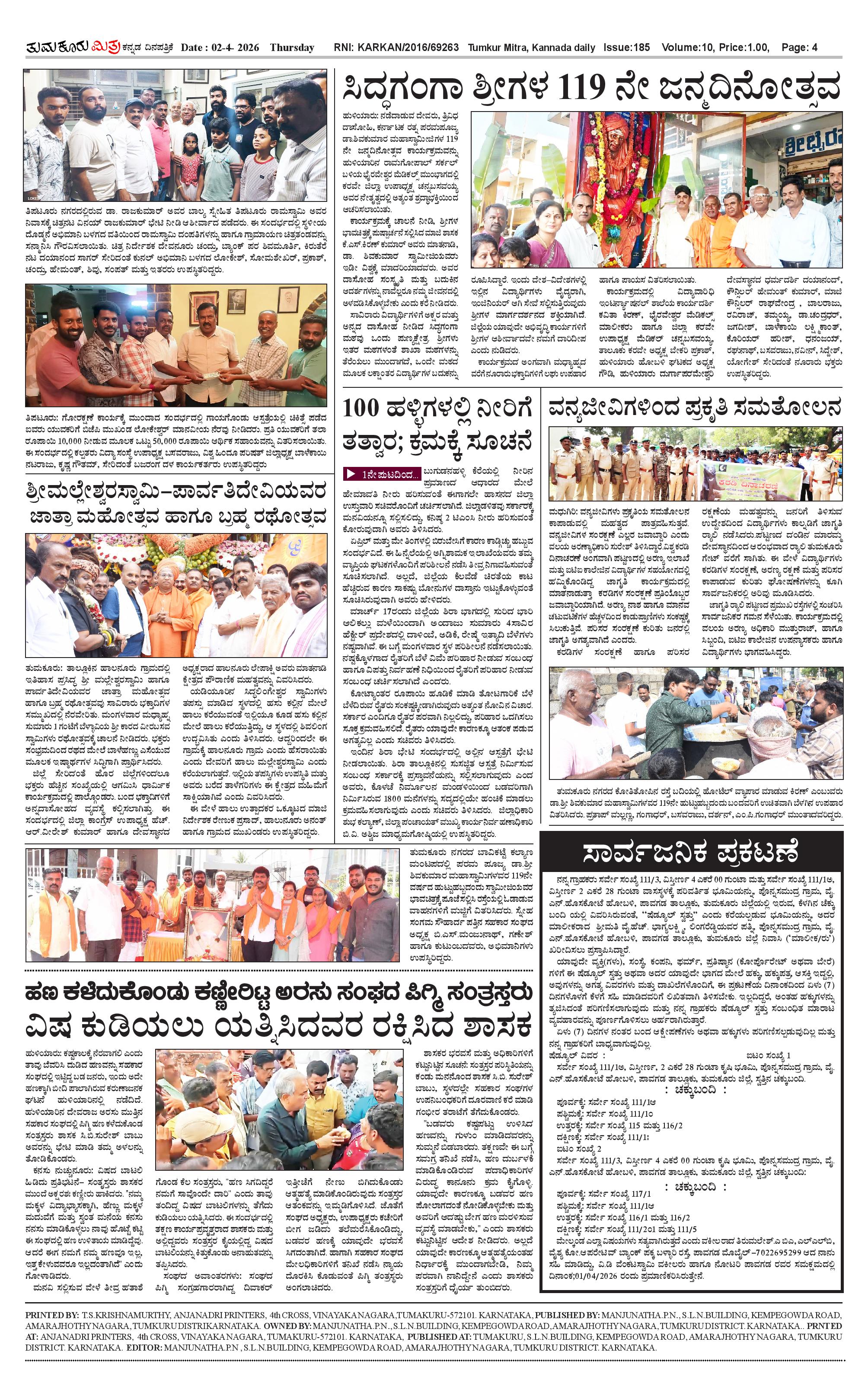 ತುಮಕೂರು ಮಿತ್ರ ಕನ್ನಡ ದಿನಪತ್ರಿಕೆ Page: 4 April 02, 2026 << First << 4 >> Last >> Page 1Page 2Page 3Page 4 × ತುಮಕೂರು ಮಿತ್ರ ಕನ್ನಡ ದಿನಪತ್ರಿಕೆ 1-page-0012-page-0013-page-0014-page-001 << First << 4 >> Last >> 1-page-0012-page-0013-page-0014-page-001 4-page-001