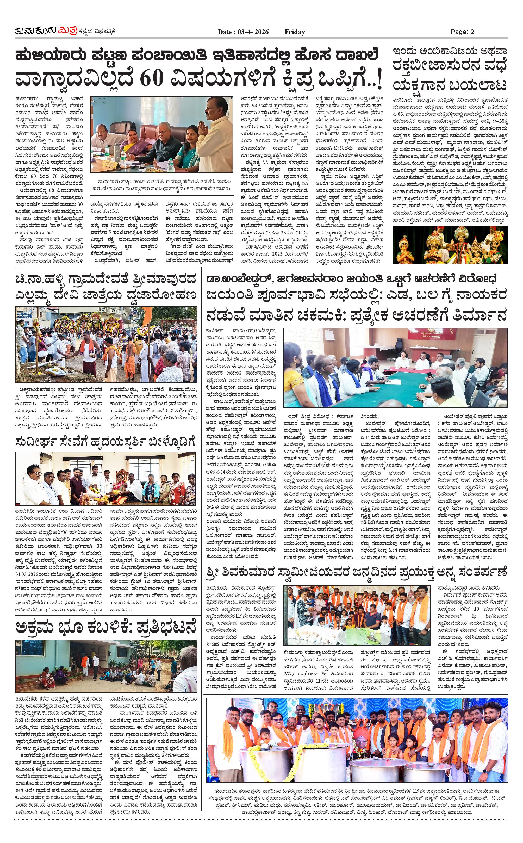 ತುಮಕೂರು ಮಿತ್ರ ಕನ್ನಡ ದಿನಪತ್ರಿಕೆ Page: 2 April 03, 2026 << First << 2 >> Last >> Page 1Page 2Page 3Page 4 × ತುಮಕೂರು ಮಿತ್ರ ಕನ್ನಡ ದಿನಪತ್ರಿಕೆ 1-page-0012-page-0013-page-0014-page-001 << First << 2 >> Last >> 1-page-0012-page-0013-page-0014-page-001 2-page-001