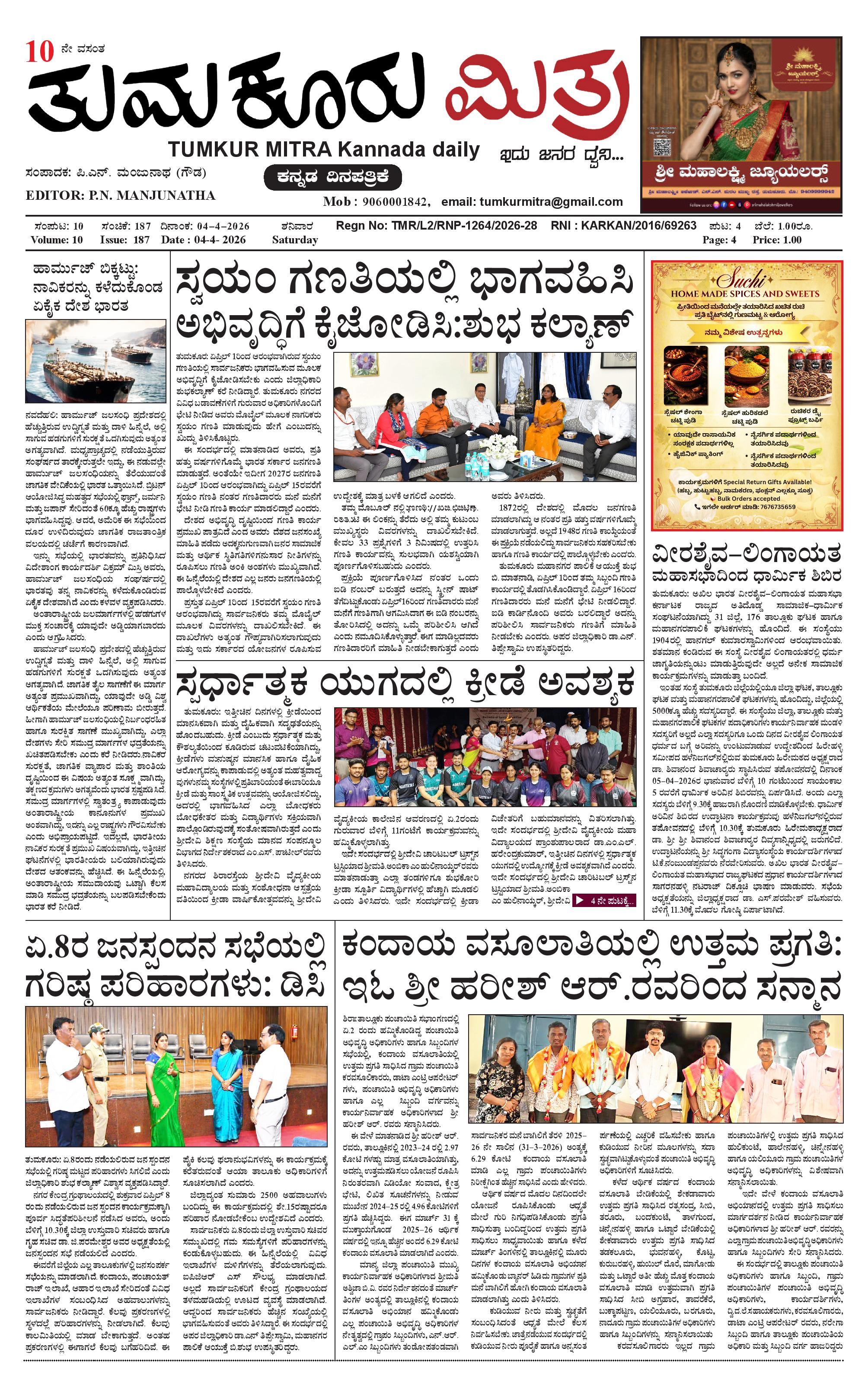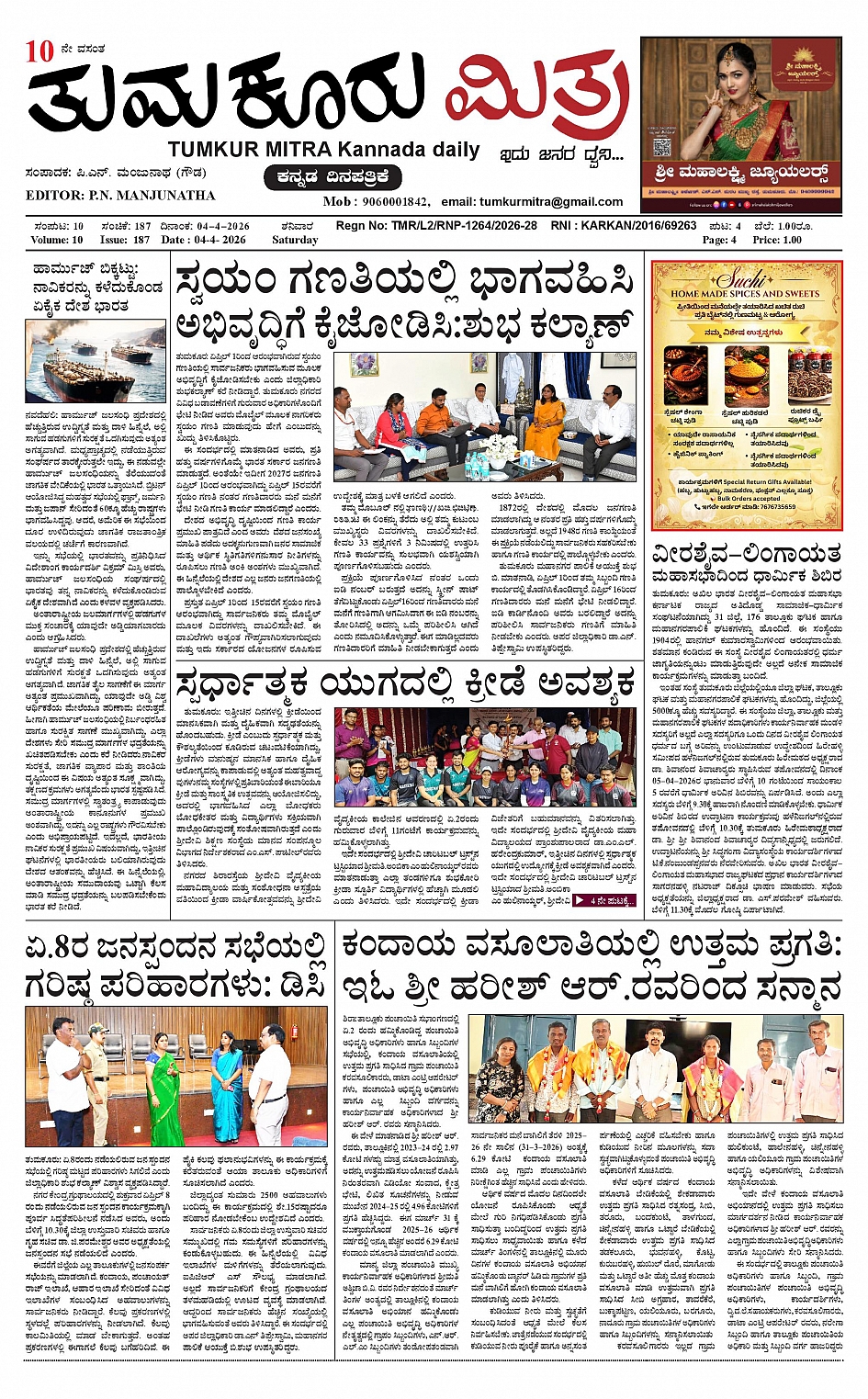 ತುಮಕೂರು ಮಿತ್ರ ಕನ್ನಡ ದಿನಪತ್ರಿಕೆ April 04, 2026 << First << 1 >> Last >> Page 1Page 2Page 3Page 4 × ತುಮಕೂರು ಮಿತ್ರ ಕನ್ನಡ ದಿನಪತ್ರಿಕೆ 1 Edited-page-0012-page-0013-page-0014-page-001 << First << 1 >> Last >> 1 Edited-page-0012-page-0013-page-0014-page-001 1 Edited-page-001